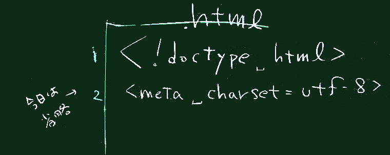 HTMLファイルの先頭には、図のような2行(日本語文字を表示しなければ先頭行だけでも)を