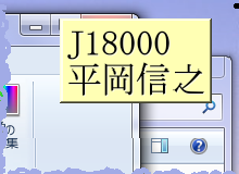 画面の右上隅に、30ポイント程度のサイズで 自分の名前(と、できれば学籍番号)を表示するには(例)。