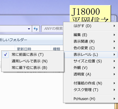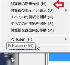 付箋を右クリックするとコンテキストメニューが出ます(図は省略)