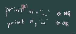 Rubyのprint メソッドは、複数の引数を渡せるので上記のような使い方になるが、 (言語によっては)